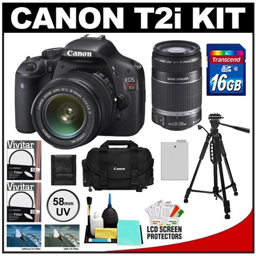 ▷▷▷Blackfriday Canon EOS Rebel T2i Digital SLR Camera Body & EF-S 18-55mm IS Lens (Black) with 55-250mm IS Lens + 16GB Card + Battery + Canon 2400 DSLR Gadget Bag Case + Tripod + Filters + Accessory Kit
