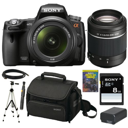 ▷▷▷Blackfriday Sony Alpha SLT-A55V/L 16.2MP DSLR with Translucent Mirror Technology and 3D Sweep Panorama and 18-55mm F3.5-5.6 Lens with Sony SAL552002 55-200mm f/4-5.6 SAM DT Telephoto Zoom Lens + Accessory Kit