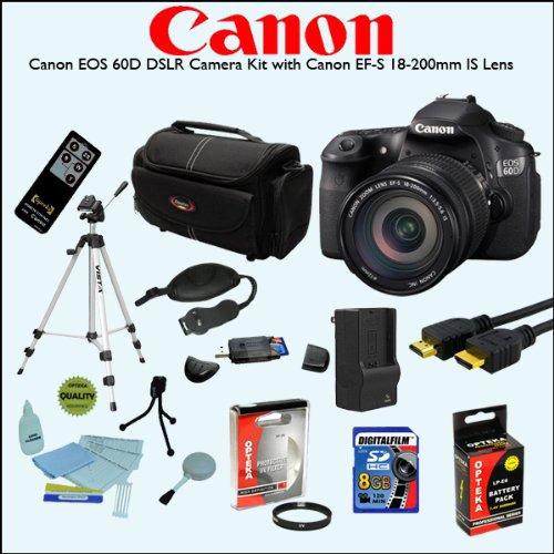 Blackfriday Canon EOS 60D DSLR Camera Kit with Canon EF-S 18-200mm IS Lens With Deluxe Accessory Kit with 8GB SDHC Memory Card, Opteka High Capacity LP-E6 Extended Battery, Opteka 72mm UV Filter and Much More!