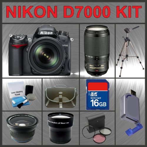 Blackfriday Nikon D7000 DSLR Camera Kit with 18-55mm f/3.5-5.6G VR AF-S DX Nikkor Lens + Nikon AF-S VR Zoom-NIKKOR 70-300mm f/4.5-5.6G IF-ED Telephoto Zoom Lens + Huge Accessories Package Including Wide Angle Macro Lens + Telephoto Lens + 16gb SDHC Memory Card + Hi-Speed SD Card Reader + 53'' Tripod + LCD / Lens Cleaner Kit + 3 Piece Lens Filter Kit + Carrying Case + Kit