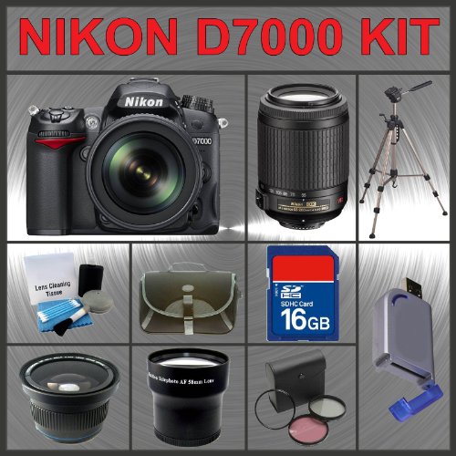 Blackfriday Nikon D7000 DSLR Camera Kit with 18-55mm f/3.5-5.6G VR AF-S DX Nikkor Lens + Nikon AF-S DX VR Zoom-Nikkor 55-200mm f/4-5.6G IF-ED Lens + Huge Accessories Package Including Wide Angle Macro Lens + Telephoto Lens + 16gb SDHC Memory Card + Hi-Speed SD Card Reader + 53'' Tripod + LCD / Lens Cleaner Kit + 3 Piece Lens Filter Kit + Carrying Case + Kit