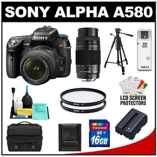 Blackfriday Sony Alpha DSLR-A580 16.2 MP Digital SLR Camera & 18-55mm Lens with 75-300mm Lens + 16GB Card + Battery + Tripod + Case + UV Filters + Cleaning & Accessory Kit
