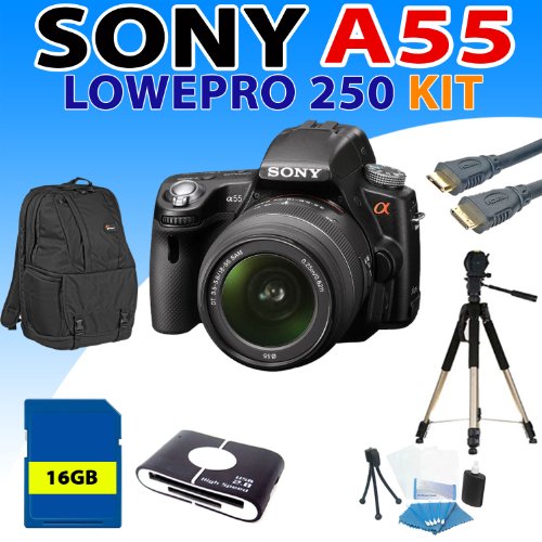 Blackfriday Sony Alpha Dslr-slt-a55 A-55 Digital Camera w/ Sal1855 18-55mm F/3.5-5.6 Dt Af Zoom Lens, Lowepro Fastpack 250 (Black), 16gb Sdhc Memory Card, 57 Inch Aluminum Tripod and More - (16gb Pro-shooter Kit)