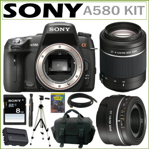 Blackfriday Sony Alpha A580 16.2MP HD DSLR Camera (Body Only) with Sony SAL552002 Telephoto Zoom Lens and SAL50F18 50mm Lens + 8GB Accessory Kit