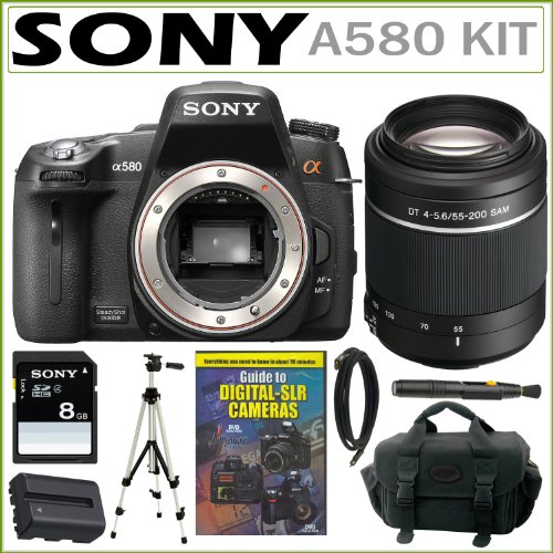 Blackfriday Sony Alpha A580 16.2MP HD DSLR Camera (Body Only) with Sony SAL552002 55-200mm f/4-5.6 SAM DT Telephoto Zoom Lens + Accessory Kit