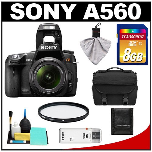 Blackfriday Sony Alpha DSLR-A560 Digital SLR Camera Body & 18-55mm Lens with 8GB Card + UV Filter + Case + Accessory Kit